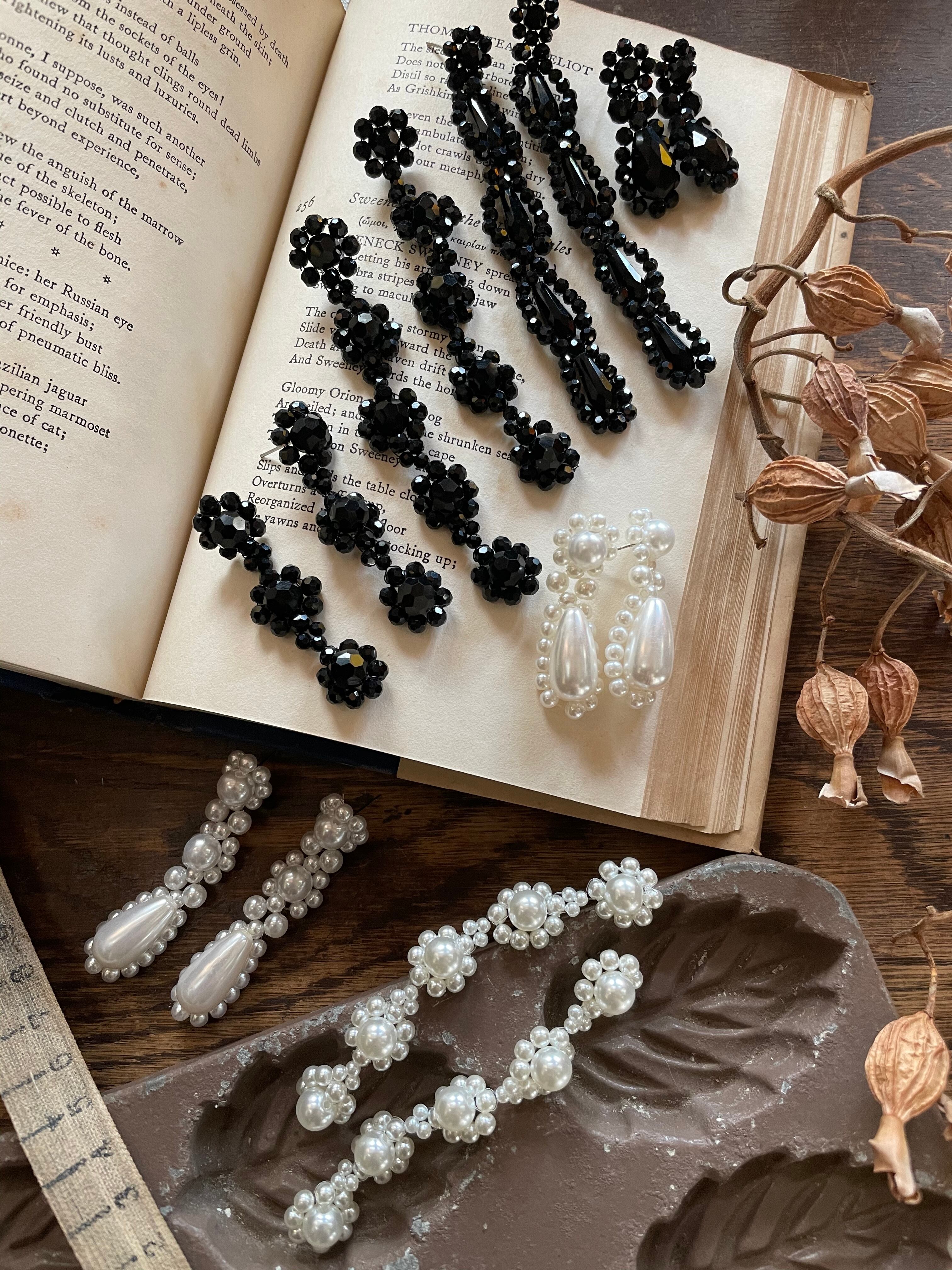 A ブラックビーズピアス ショート
