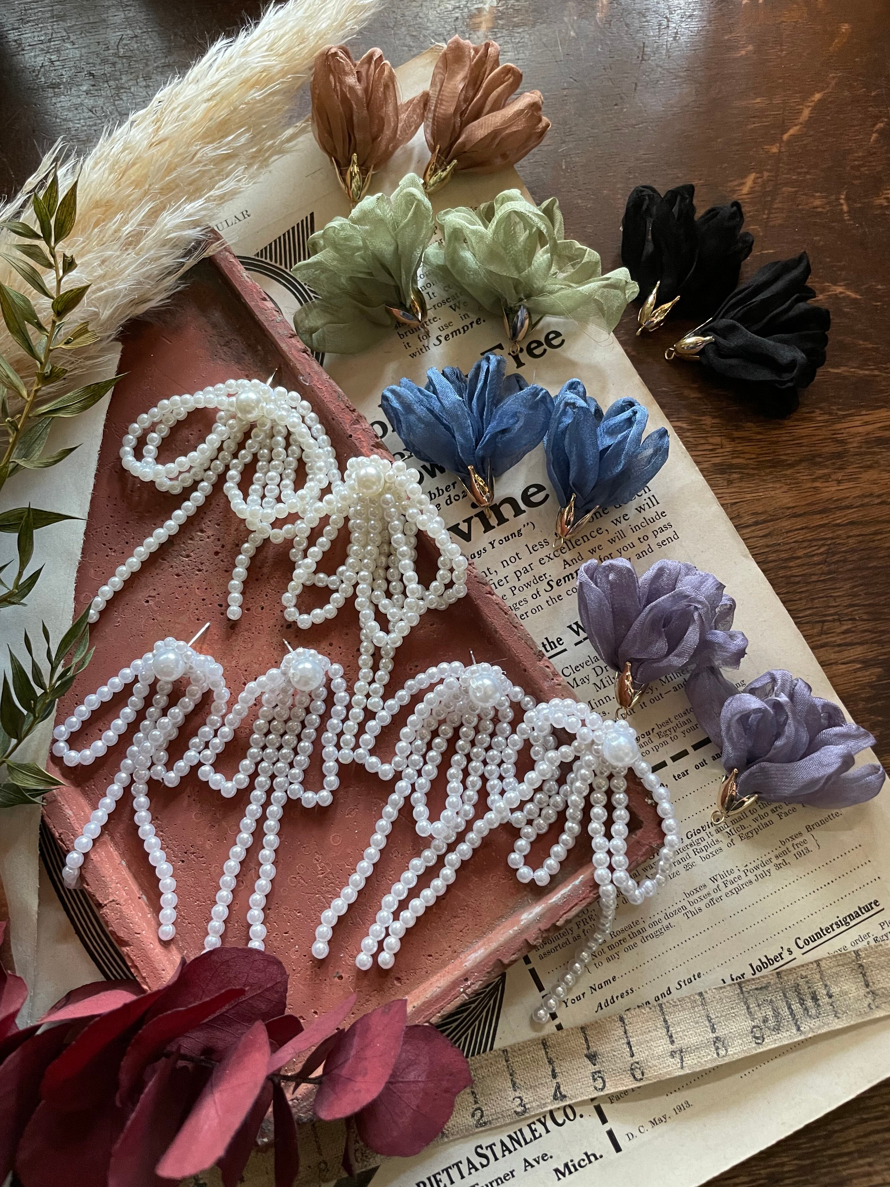 ホワイトパールチェーンピアス 蝶々結び3連